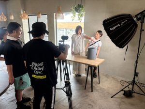 当日はカメラや照明がずらりと並び、まるでドラマ撮影のような雰囲気!
